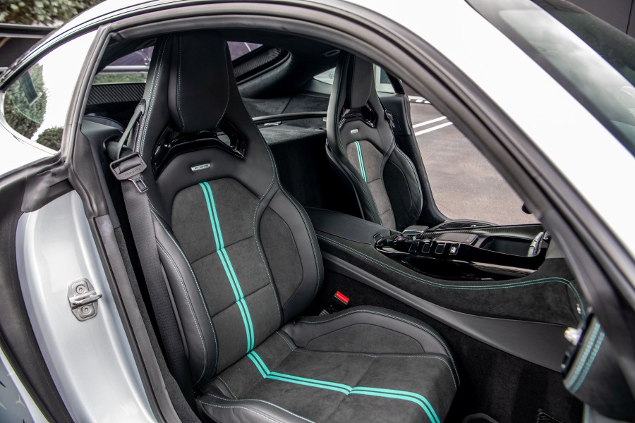 The 4.0-liter twin-turbo V8 engine was the same, but the color scheme was unique to this model. The Project One was painted in Cirrus Silver and Obsidian Black with turquoise accents as a tribute to Mercedes’ Formula 1 partner, Petronas. In addition, the body stood out with aggressive carbon-fiber aerodynamic elements and an intricate three-pointed star motif on the doors.