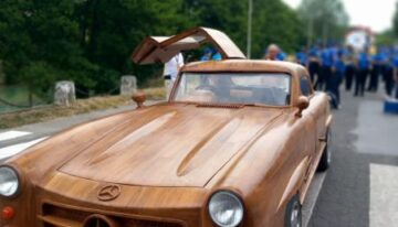 Unique in the world: this is the only wooden Mercedes 300 SL with a working engine in existence. It was created by art carpenter Remy Le Forestier and will be auctioned on November 16.