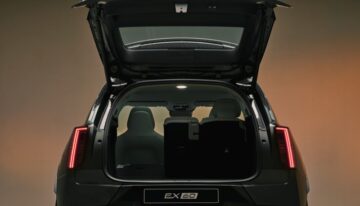 On the Volvo EX60, the outer rear seat backrests are electrically adjustable and include integrated child booster seats in traditional Volvo style. The rear bench can be folded in a 40/20/40 split to increase luggage capacity (523 liters from which 63 liters under the load floor) up to a maximum of 1,647 liters.