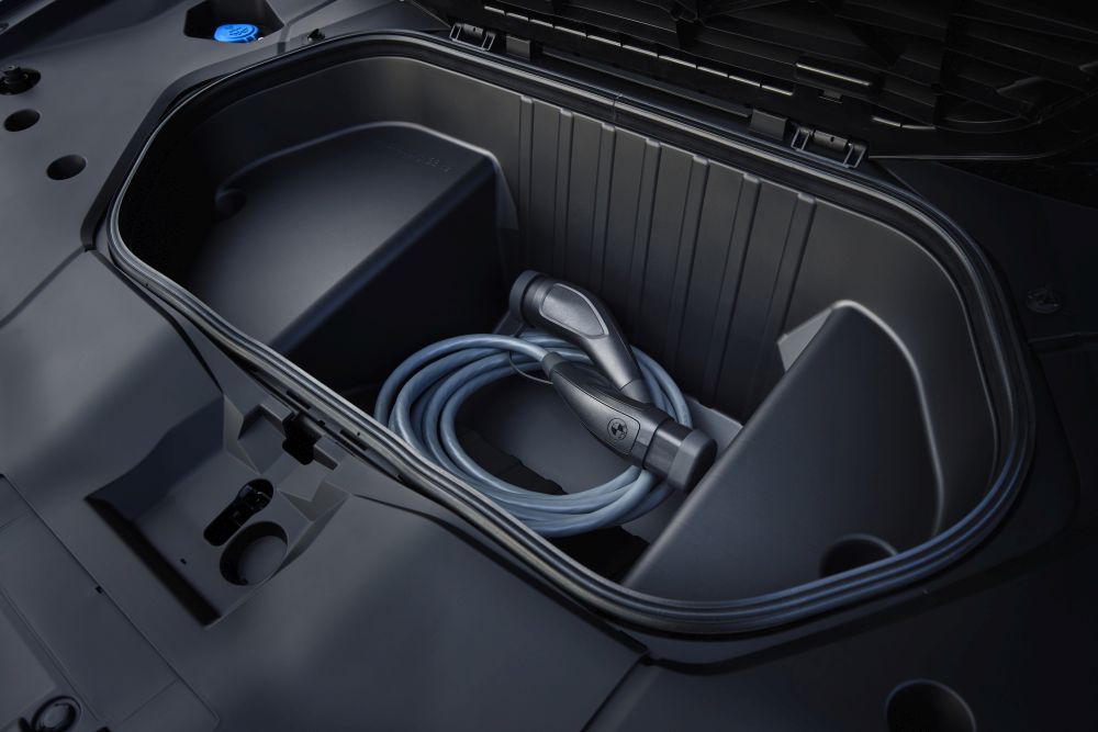 The Mercedes frunk has no lid, but it opens in a more original way: by pressing the Mercedes logo on the hood, after first unlocking it.