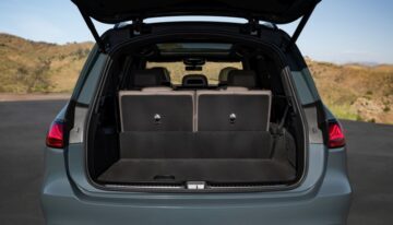 The Mercedes GLS comes standard with seven seats, and the space in the third row is just as generous as in the second row thanks to the vehicle’s imposing dimensions: 5,207 mm in length, 1,956 mm in width, and a wheelbase of 3,135 mm—60 mm longer than the GLE.