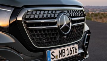 In terms of design changes, Mercedes wanted to differentiate the GLS from the GLE. Thus, the larger, optionally illuminated radiator grille on the GLS features two horizontal chrome bars supporting the Mercedes logo. Depending on the market, the logo is illuminated— in China it lights up when the vehicle is stationary, while in the U.S. it also shines while driving.