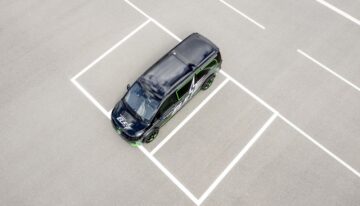Electric energy is transferred to the vehicle through a charging pad integrated into the floor.