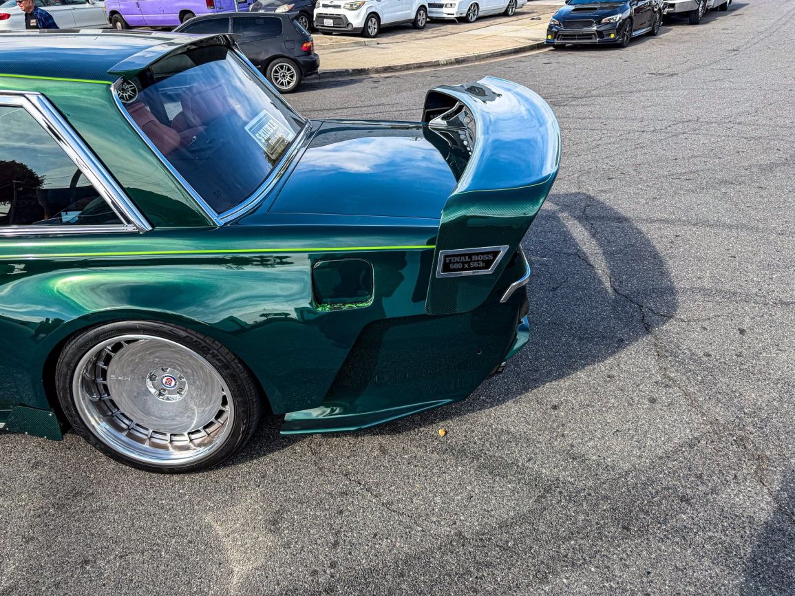 The custom-built Pullman body is painted metallic green, features widened steel fenders, a massive rear wing, LED headlights, and oversized chrome wheels. Compared to the original Mercedes 600 Pullman, this version stands out with an oversized Mercedes logo on the grille, generous air intakes, and additional auxiliary lights.