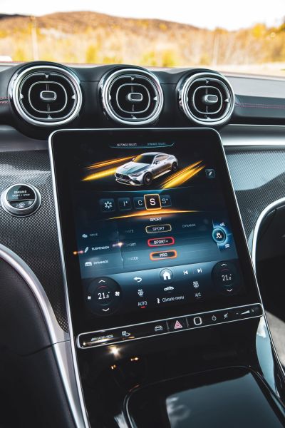 One of the most successful AMG models in recent years: superb sound, a lot of torque on a large spectrum of revs, superb design, and an acceptable price for this level of performance. The suspension is set from firm to very firm, the steering is direct and has a lot of feedback, and the road-holding is well-balanced with a high dose of pure sportivity. The attractive layout of the digital instrument cluster makes us forget the awkward navigation.