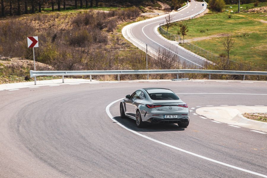 In Comfort mode, the suspension is already tuned quite firmly and the steering already has consistency and very good feedback. In Sport and Sport+, the steering and suspension have even sportier settings, the steering response is very direct and the body roll is very low even without active stabilized bars which are not available in this model. The AMG CLE 53 slices through corners with precision, aided by the standard all-wheel steering in which the rear wheels steer in the opposite direction to the front wheels by 2.5 degrees up to 100 km/h and in the same direction by 0.7 degrees above 100 km/h.