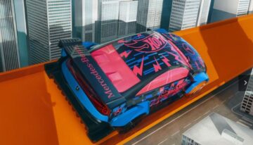 The car in the images below isn’t a real race car — it’s a stunning full-scale (1:1) toy created by Hot Wheels, the die-cast model maker owned by Mattel. Painted in pink and blue, this Mercedes CLA EQ is more of a work of art than a toy.